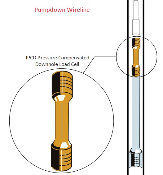 地底深い井戸内でのポンプ汲み上げ時の圧縮・引張力を計測します。曲がった、あるいは、横方向の井戸では地上で張力を計測しても無意味です。IPCD圧力補償型ロードセルは、高温、高圧下でダウンホール張力および圧縮測定用に特別に開発されました。